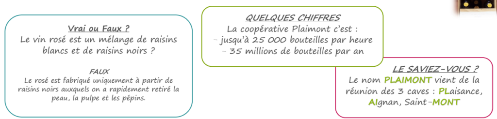 La journée a commencé par la présentation des cépages et des différents domaines. Ensuite, les travailleurs ont pu visiter le chai, la cave puis la salle de conditionnement. Ils en ont profité pour exprimer le souhait de revenir au moment des vendanges pour voir le travail du début à la fin et pour marcher dans les vignes.